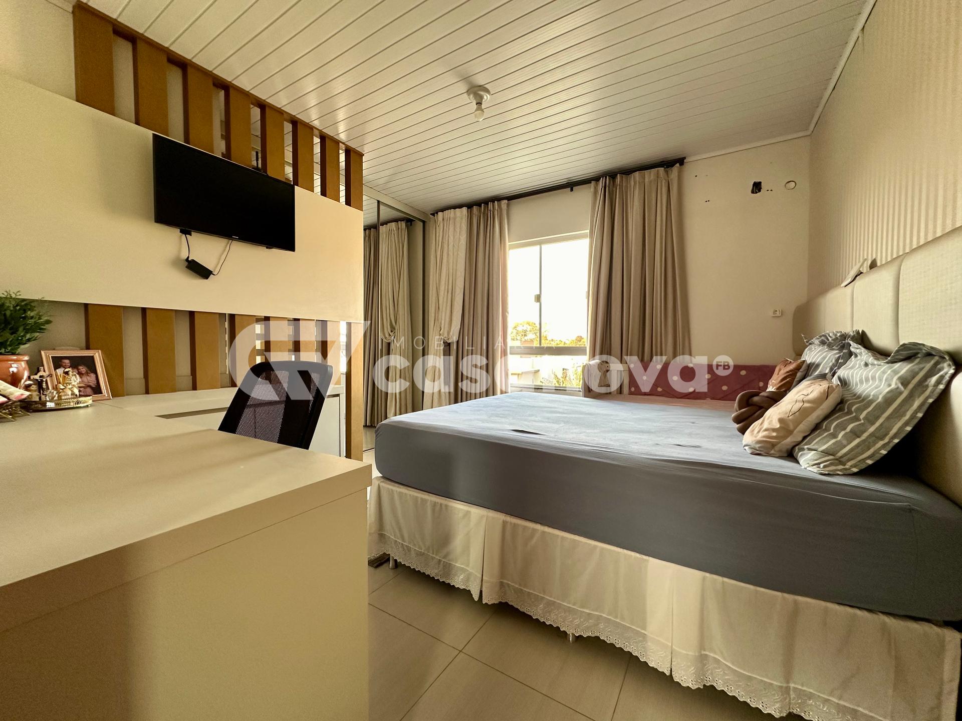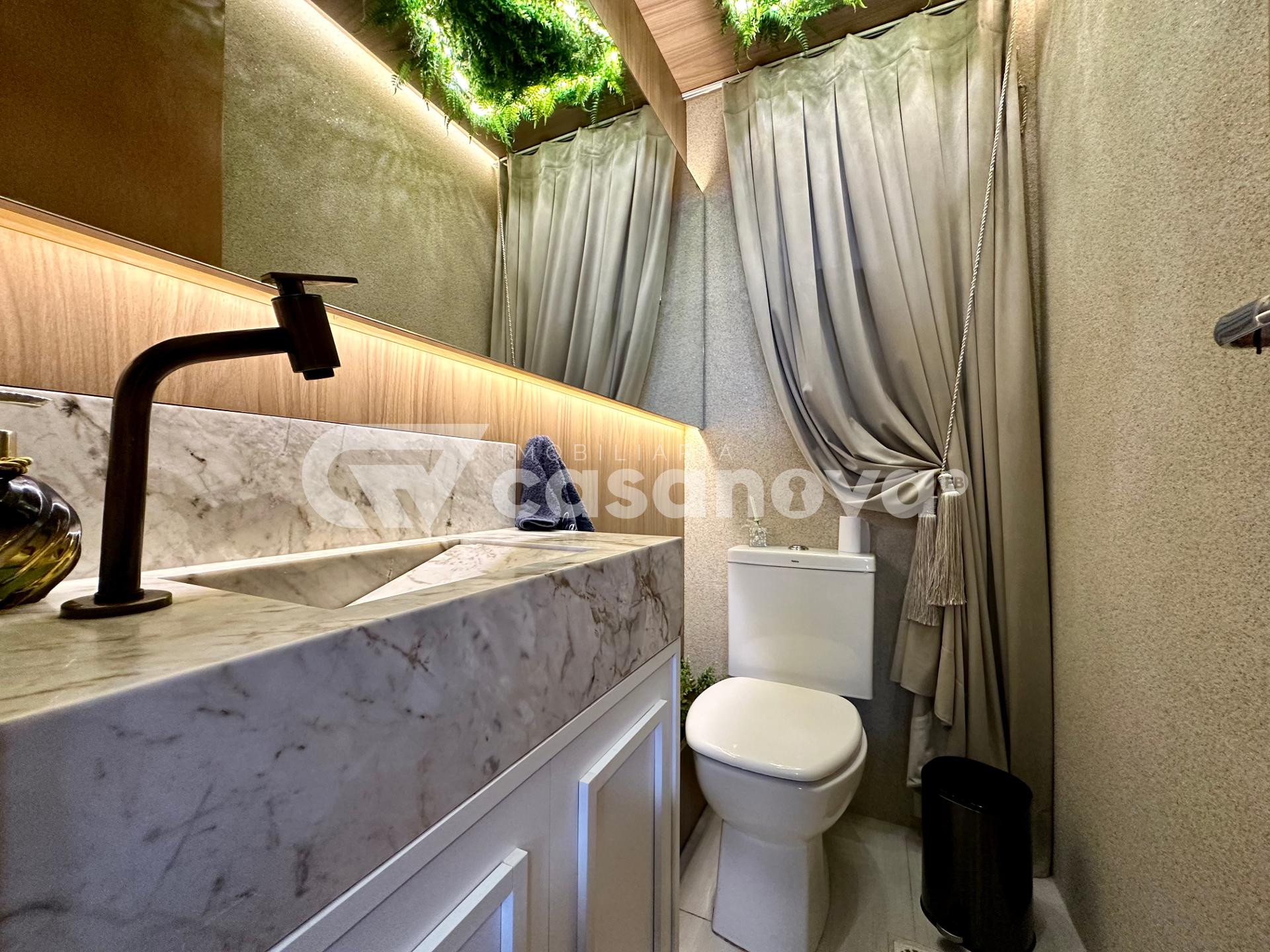 O imóvel é semi mobiliado, com móveis sob medida e acabamentos de primeira. No piso inferior, você encontrará uma ampla sala, lavabo, cozinha bem planejada, lavanderia e uma área com churrasqueira, ideal para momentos de lazer com a família e amigos.