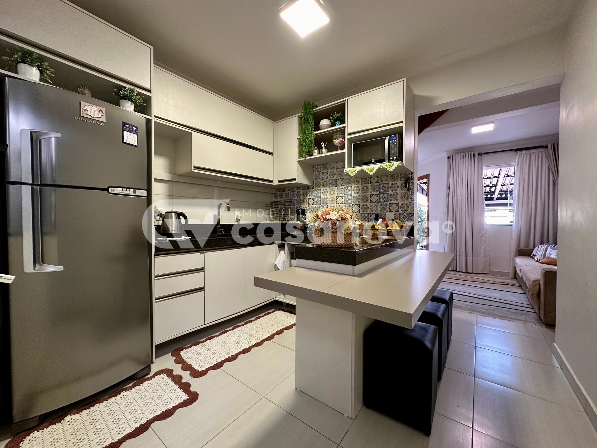 Já no piso superior, há dois quartos bem distribuídos e um banheiro moderno. Perfeito para quem deseja morar com estilo e praticidade em uma localização privilegiada.